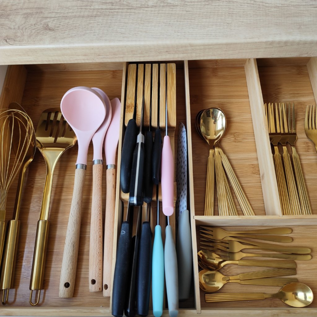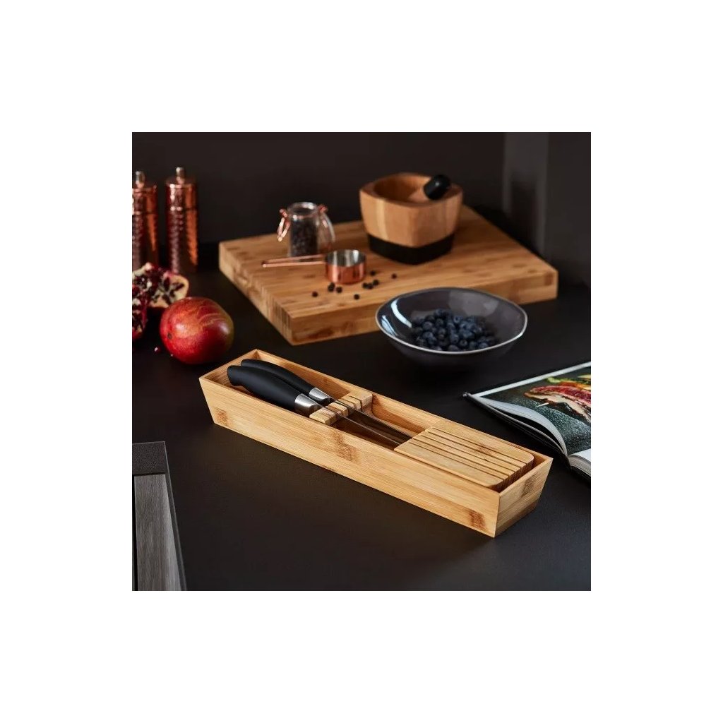 Stojan na nože, organizér do zásuvky - NITAKI bambusový na 10 nožov