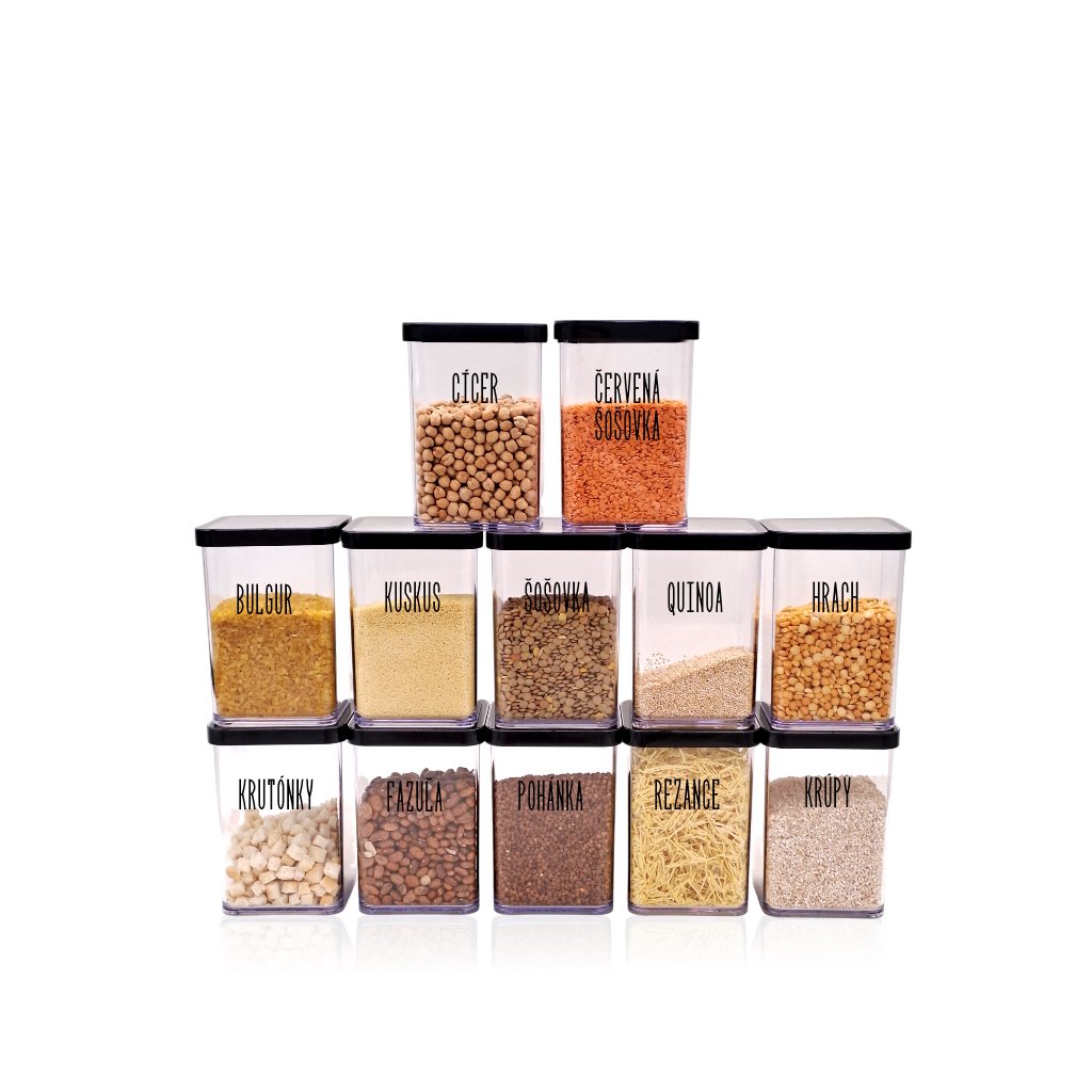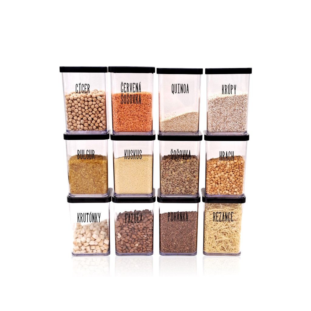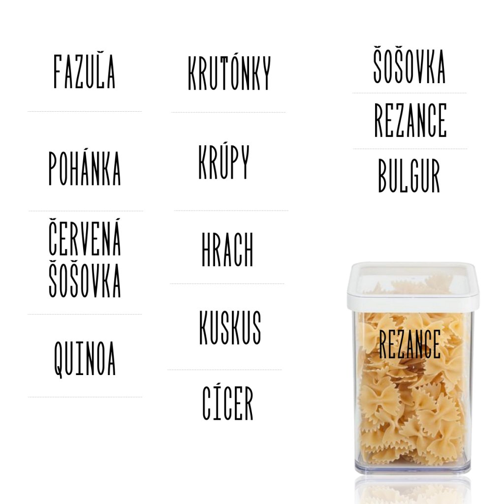 Vďaka štítkom budete mať všetky dózy a nádoby prehľadne označené, čo uľahčuje organizáciu a vyhľadávanie. Už žiadne hľadanie toho, čo sa skrýva vnútri. Každý obsah bude jasne označený a ľahko dostupný.