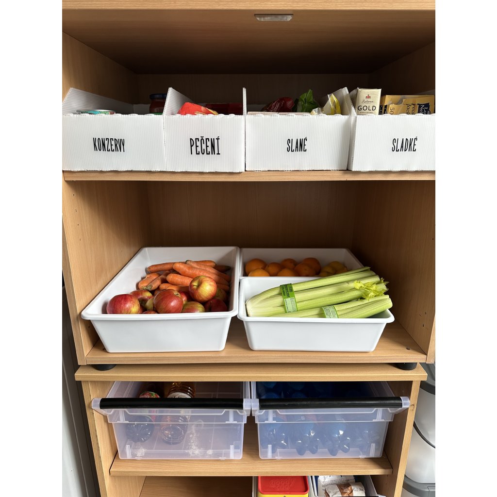 - Kuchyne a špajze: Uloženie potravín v hlbokých skriniach alebo chladničke.