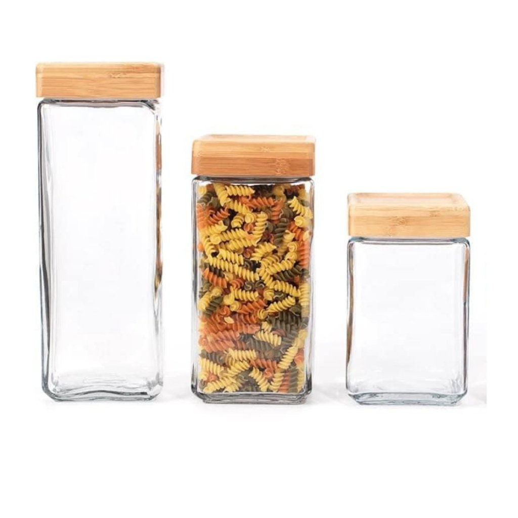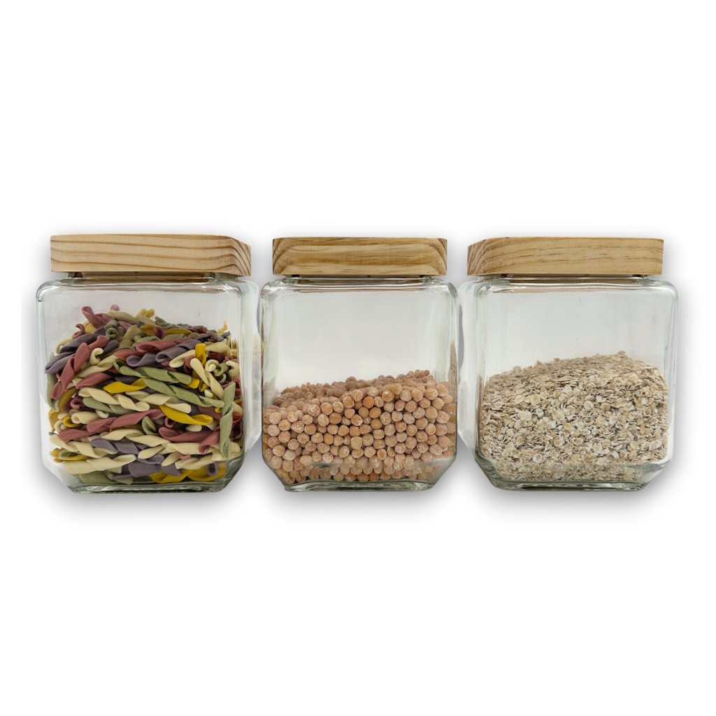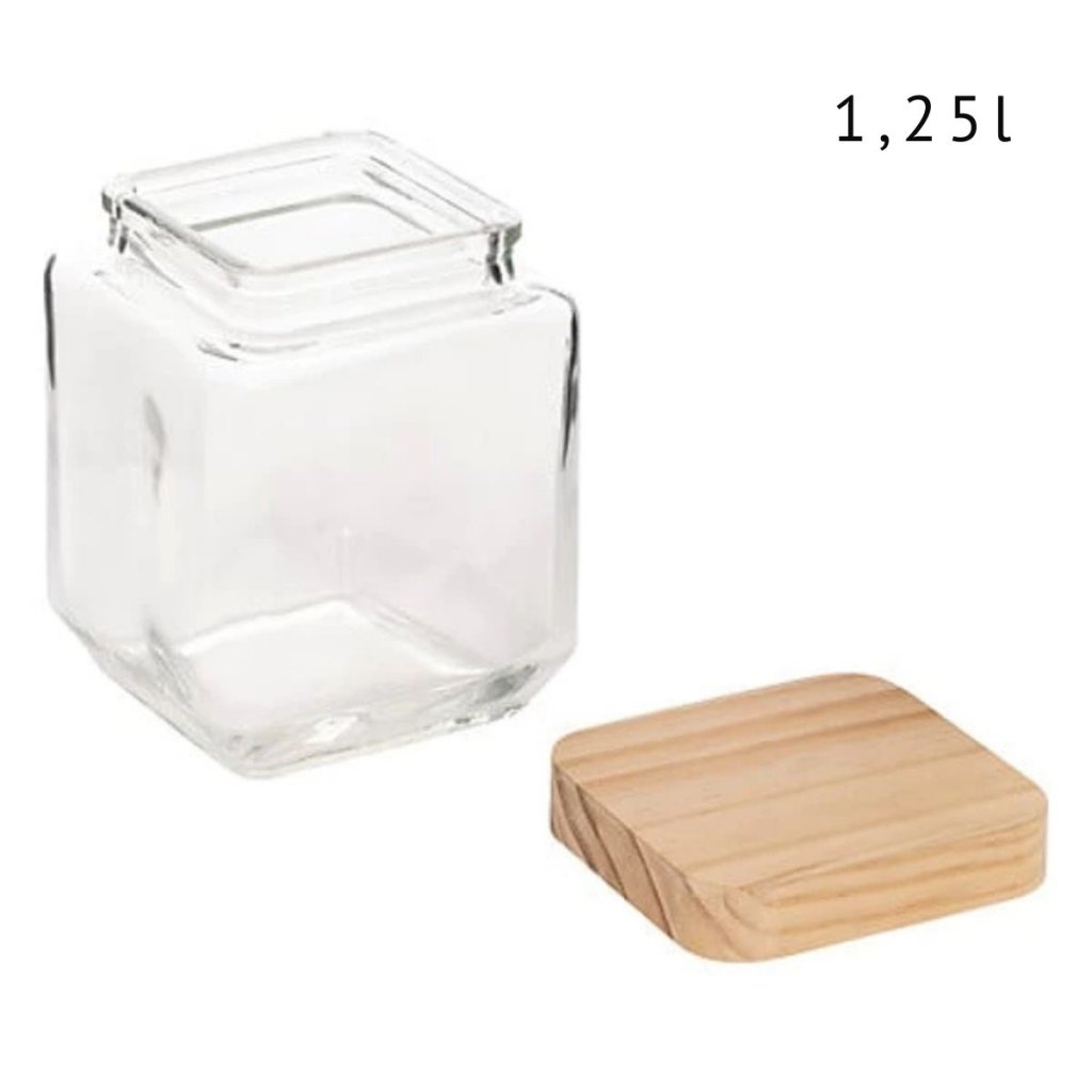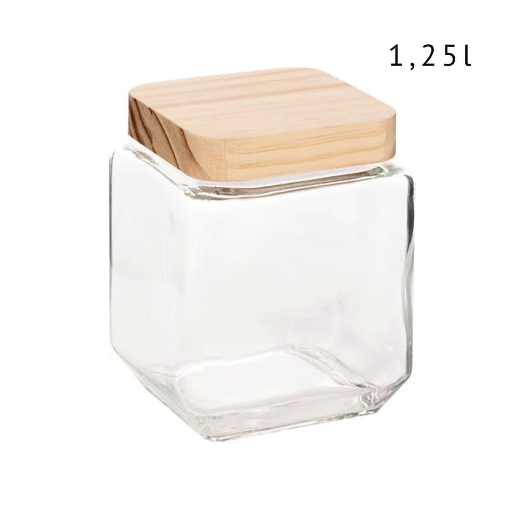 tieto sklenené dózy sú ideálne pre každého, kto má rád poriadok a štýl v kuchyni. Vďaka štvorcovému tvaru krásne zapadne do každej skrinky aj otvorené police – či už skladujete múku, cestoviny alebo cereálie. Sú vyrobené z odolného skla so silikónovým tesnením, majú drevené borovicové viečko a skvele tesnia proti vlhkosti aj pachom. Tento praktický a zároveň rustikálny kúsok je navyše vyrobený z prírodných materiálov – skla a dreva – takže poteší aj milovníkov udržateľného bývania.