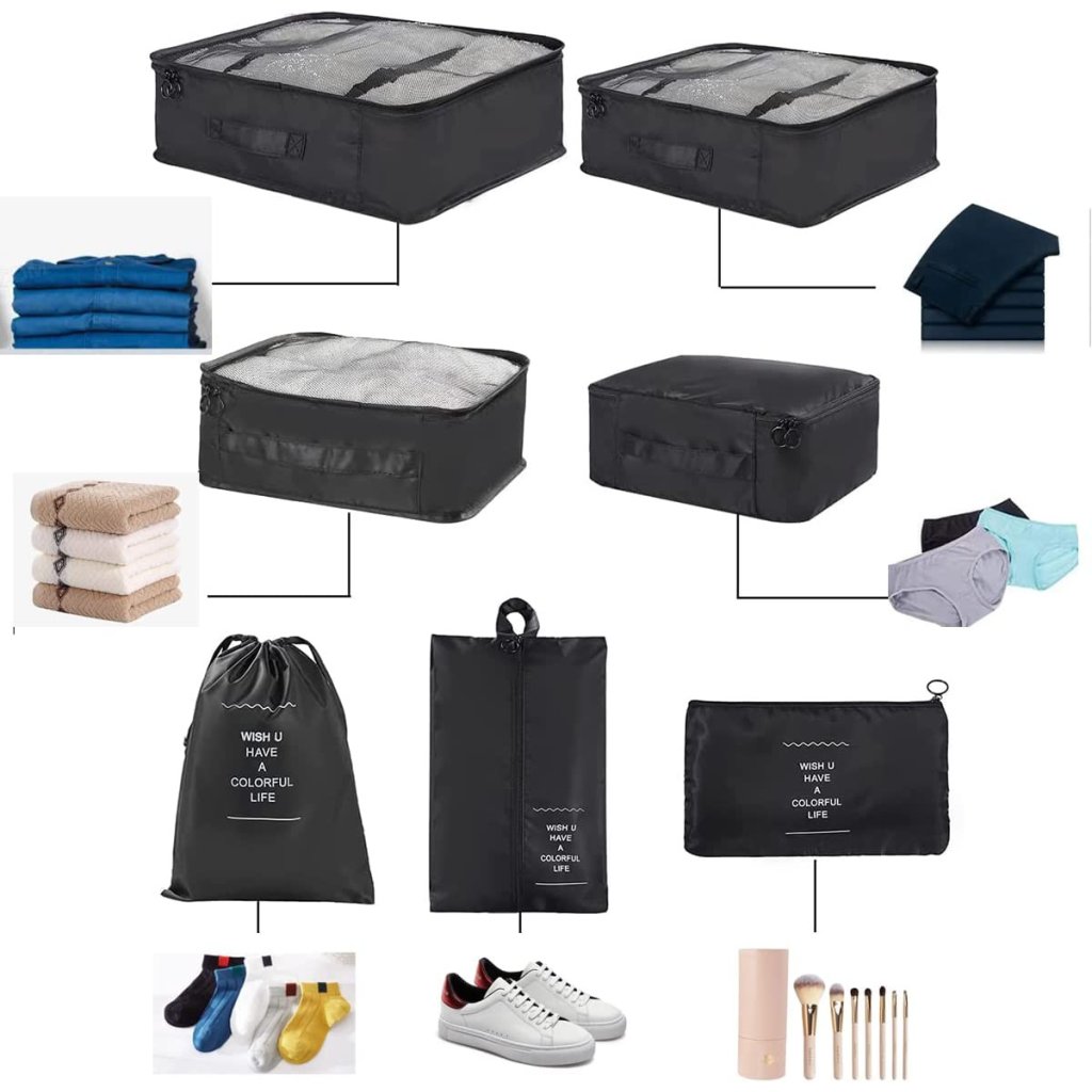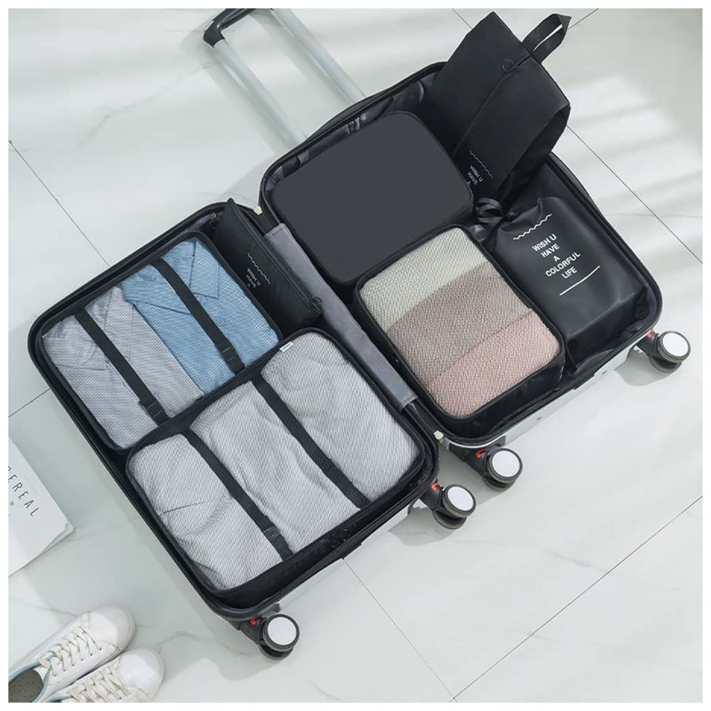 Súprava 7 cestovných organizérov, zbaľte si kufor prehľadne, TRAVEL, čierne