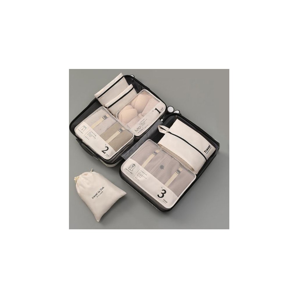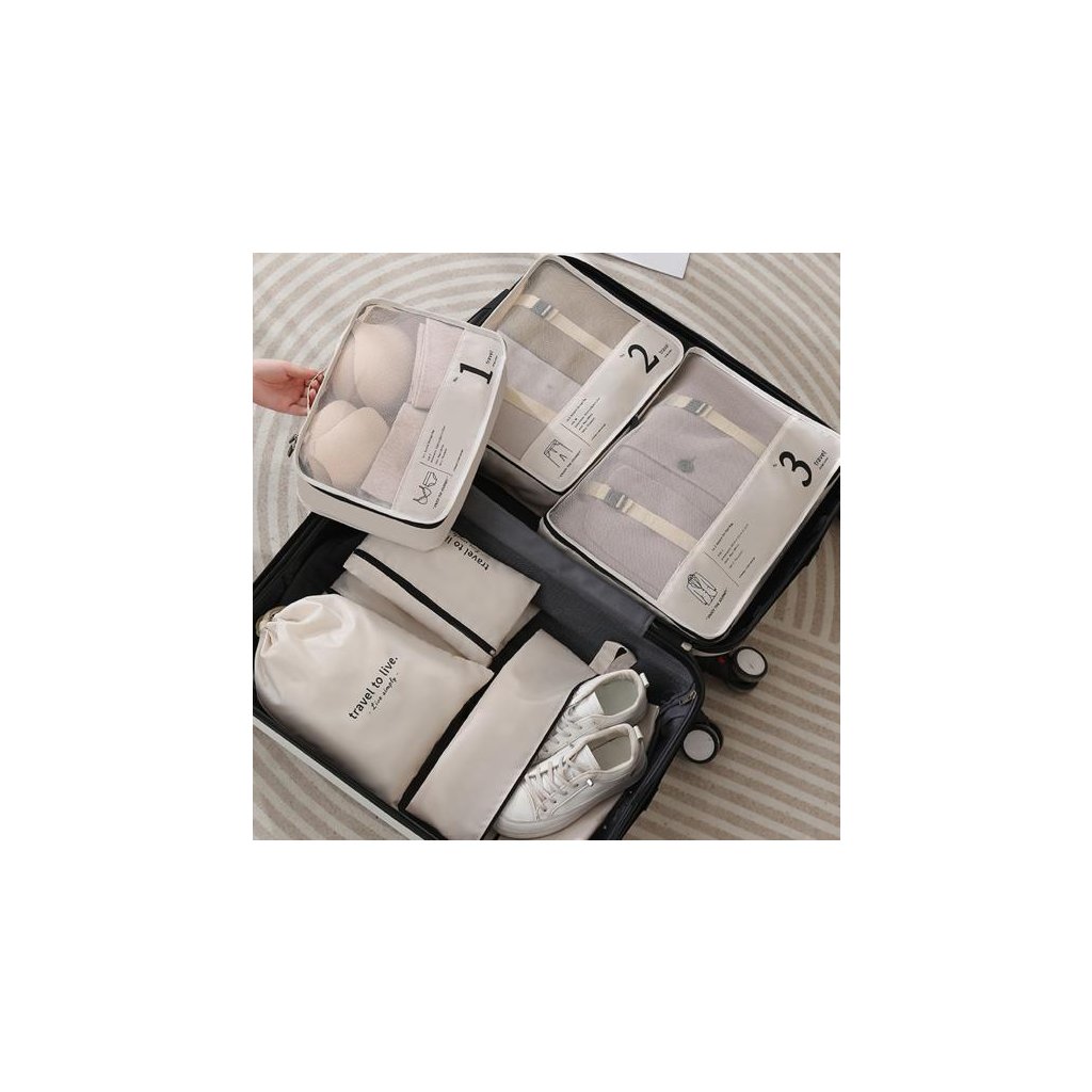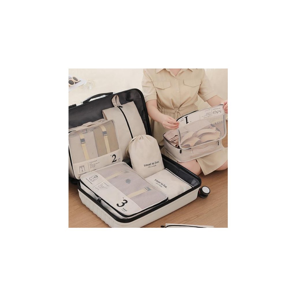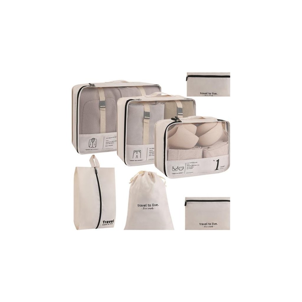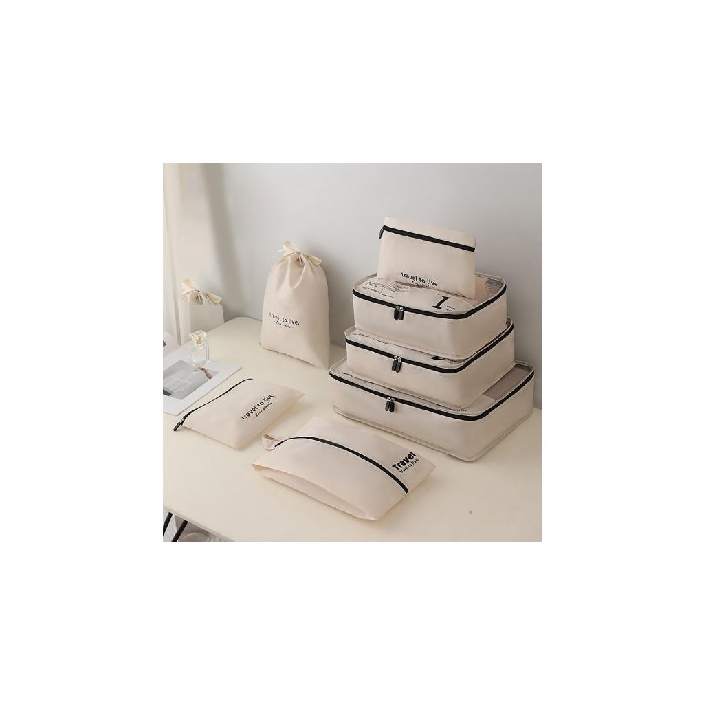 Súprava 7 cestovných organizérov, zbaľte si kufor prehľadne, TRAVEL TO LIVE, krémové
