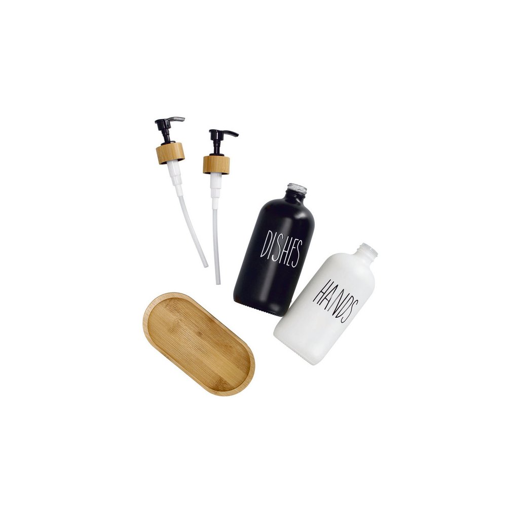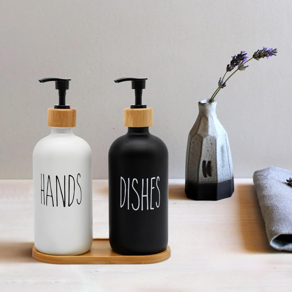 Drez je srdcom kuchyne, kde nielen umývame riad, ale aj ruky. Táto sada štýlových dávkovačov vám pomôže udržať poriadok, hygienu a zároveň pozdvihne vzhľad vášho priestoru. Kombinácia skla a prírodného bambusu dodáva luxusný vzhľad, zatiaľ čo jasné rozlíšenie farieb eliminuje akúkoľvek zámenu medzi mydlom a prostriedkom na umývanie riadu.