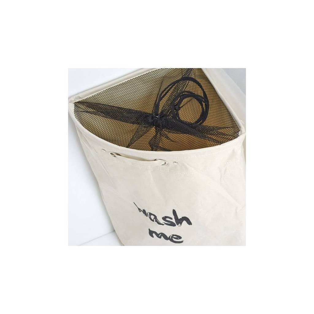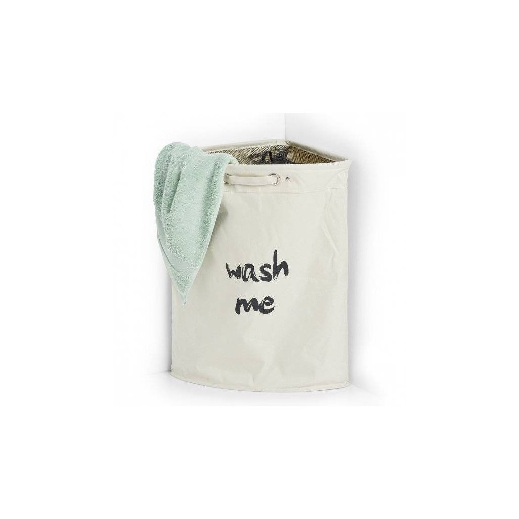 Textilný rohový kôš na špinavú bielizeň, uzatvárateľný, 50 l, krémový s nápisom WASH ME