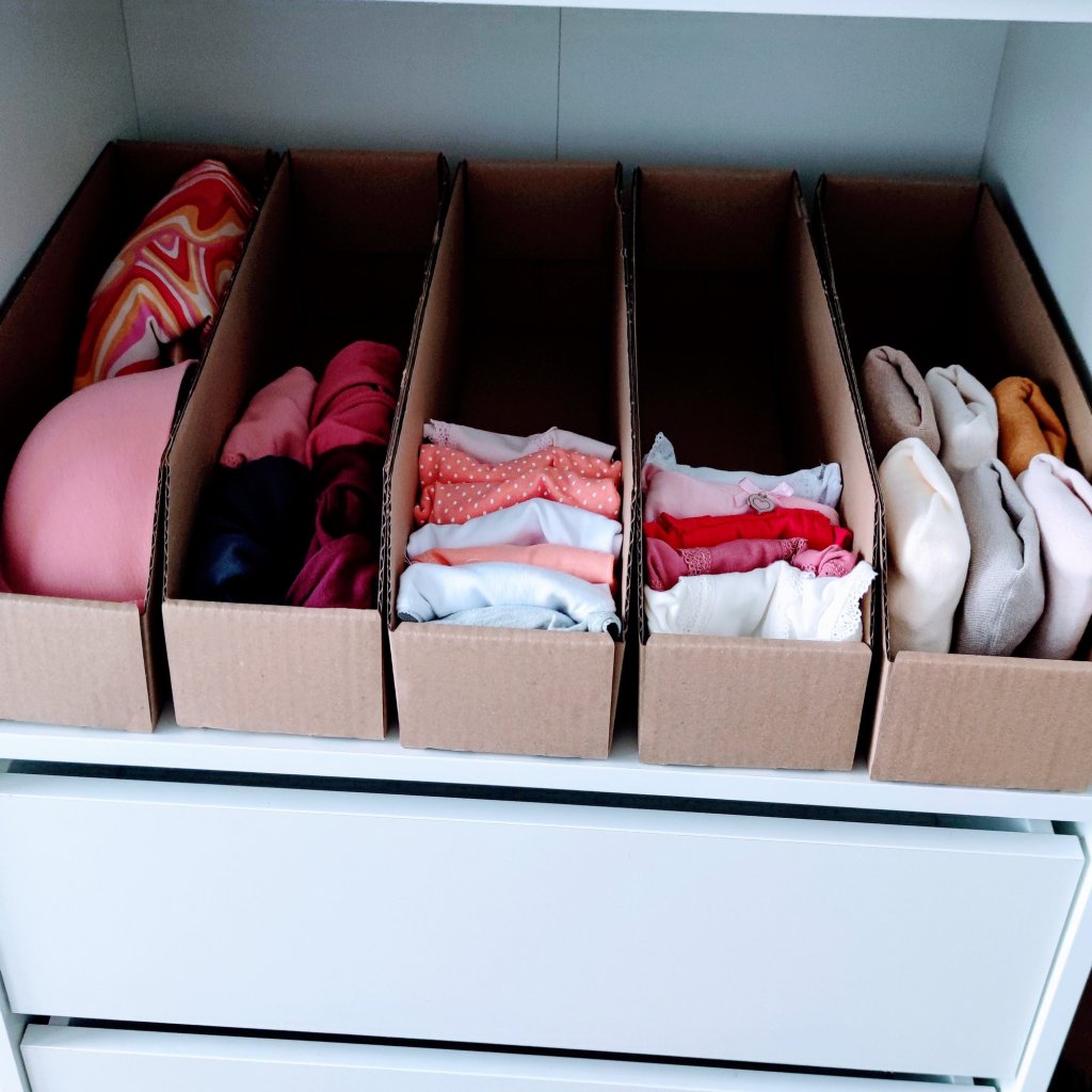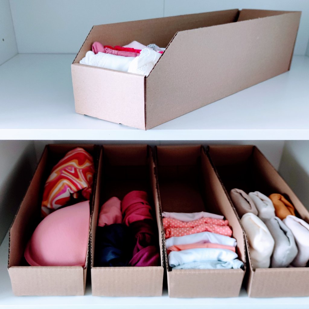 Úložné boxy na oblečenie, organizéry do skrine EKO KARTON 10x30 cm