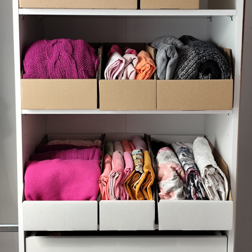 Kartónové úložné boxy na oblečenie – poriadok v štýle Marie Kondo