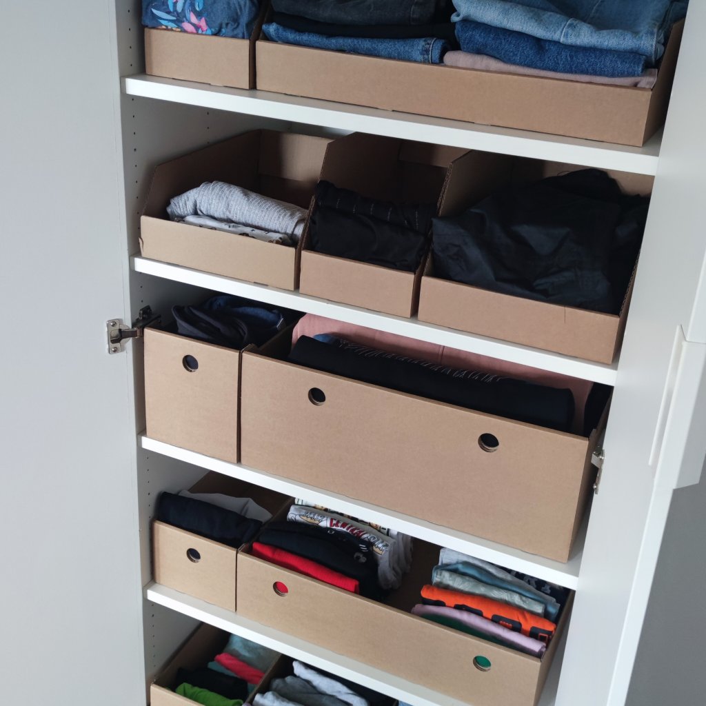 Kartónové úložné boxy na oblečenie – dokonalá organizácia v štýle Marie Kondo
