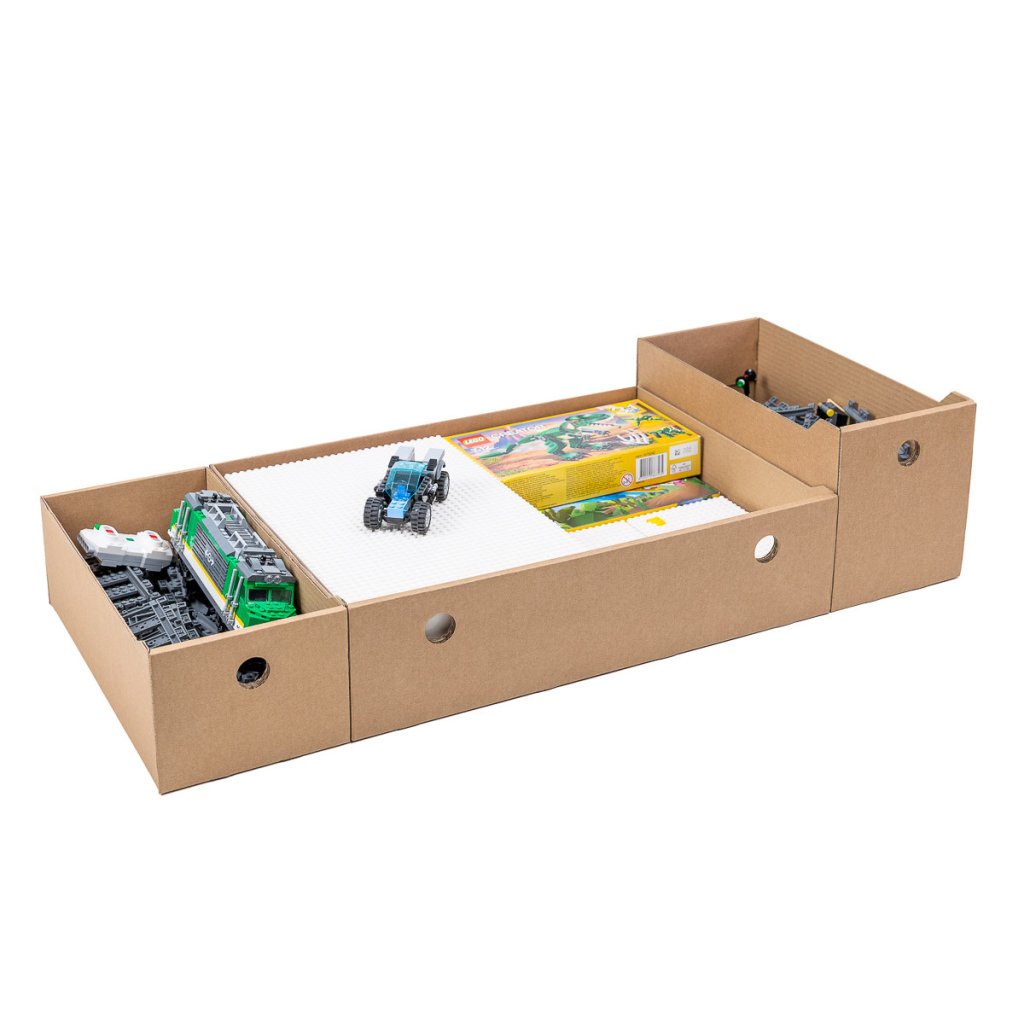 Boxy sú vyrobené z pevného **trojvrstvového kartónu**, ktorý je nielen odolný, ale aj šetrný k životnému prostrediu. Ich minimalistický dizajn zaručuje jednoduchú manipuláciu a elegantný vzhľad. Dodávané sú v plochom stave, takže si ich ľahko zložíte.