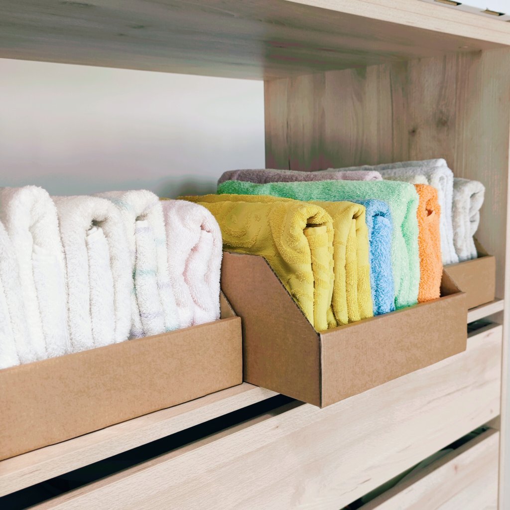Pre milovníkov poriadku a efektívnej organizácie, inšpirovaní metódou Marie Kondo, predstavujeme ideálne riešenie pre vašu šatníkovú skriňu – kartónové úložné boxy. Tieto 54cm úložné boxy oceníte v šatníkových skriniach s hĺbkou 60cm.