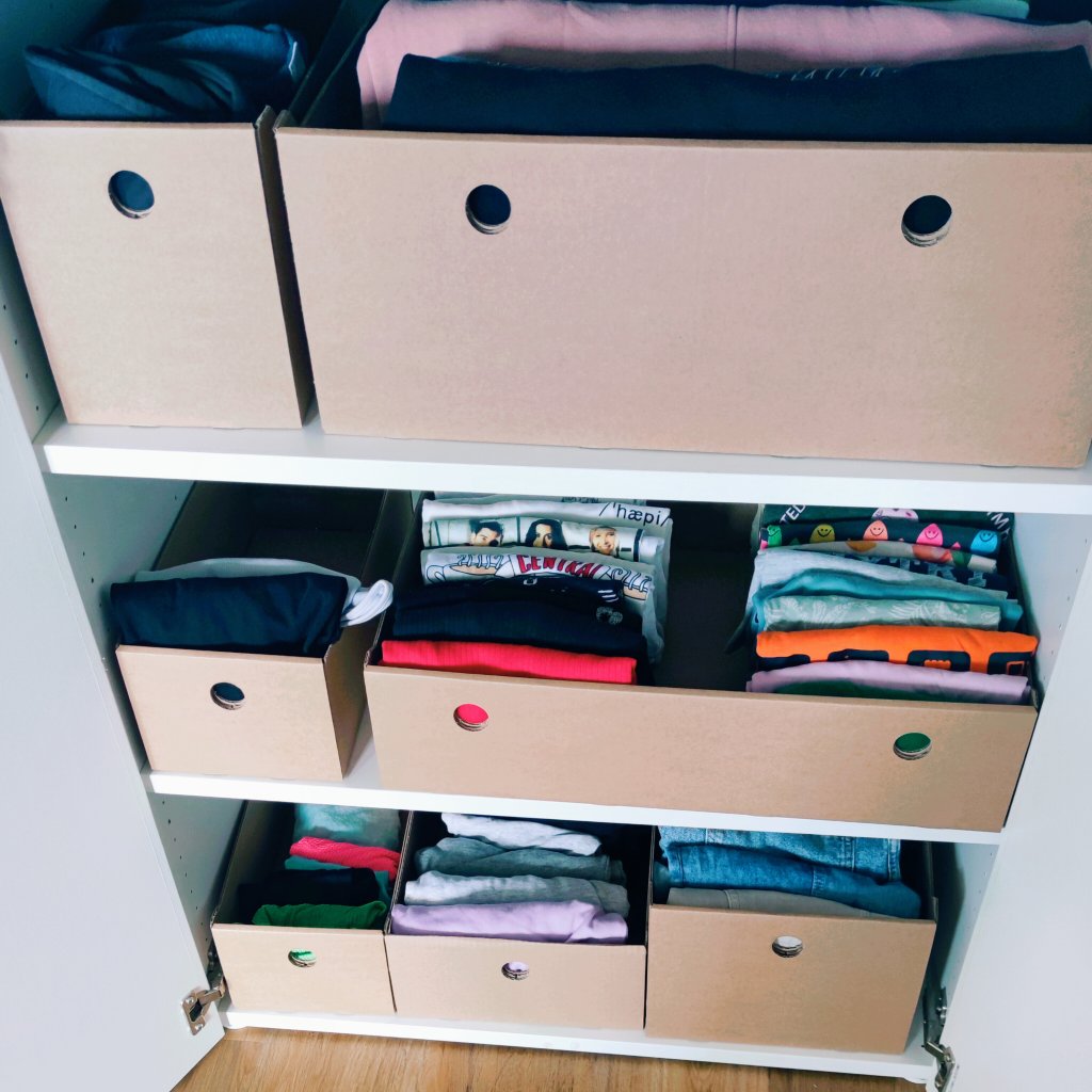 Pre milovníkov poriadku po vzore Marie Kondo tu máme perfektné organizéry a úložné boxy na oblečenie. Ideálne na skladanie vertikálnou metódou. Každá šatníková skriňa v sebe skrýva množstvo problémov, ktoré spôsobujú neefektívnu organizáciu. Jej police sú príliš hlboké a vysoké na to, aby ste videli celý ich obsah a mali všetky svoje kúsky stále po ruke. Oblečenie si ukladáte do "komínikov" v dvoch alebo viacerých radoch. Je to často neprehľadné a vytvára zbytočný neporiadok. Čas od času upracete, ale "kopy oblečenia" vzniknú znova. Na spodné kúsky zabúdate.