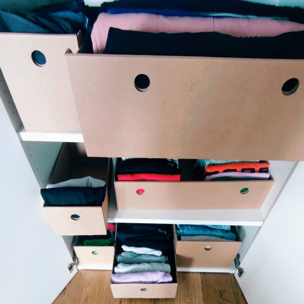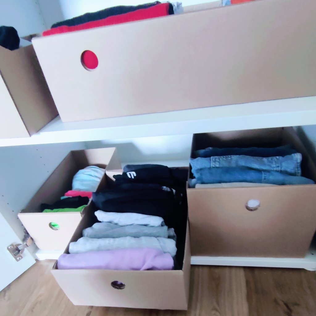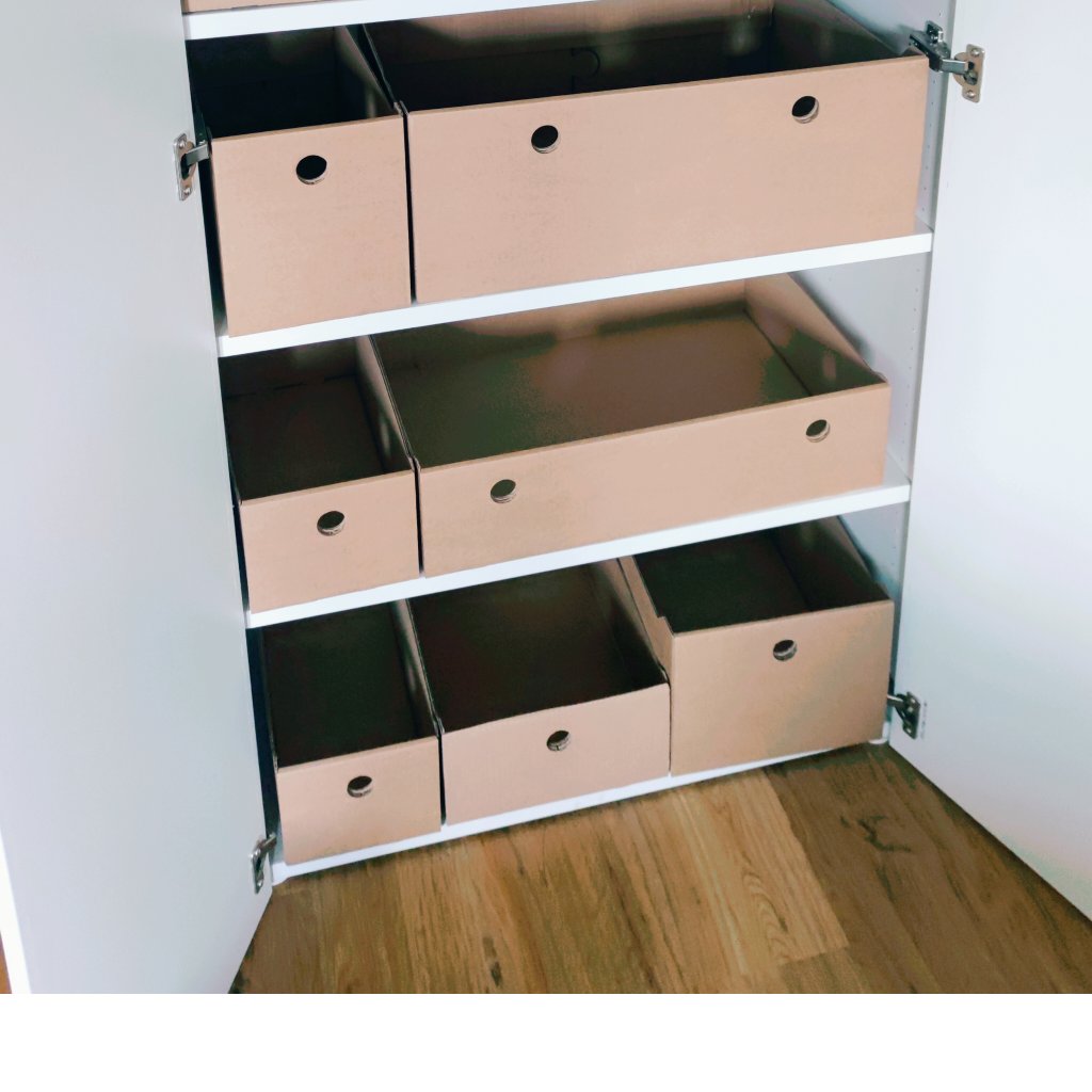 Organizér stavia na jednoduchosti, praktickosti a ekologickom dopade, preto sme nechali vyrobiť boxy z pevného trojitého kartónu. Je navrhnutý priamo na zákazku podľa našich predstáv a pre efektívne uloženie. Univerzálny box sa ale hodí aj do každej inej hlbokej skrine, kde ukladáte potraviny, náradie, hračky, kreatívne potreby, proste čokoľvek potrebujete prehľadne usporiadať a zorganizovať.