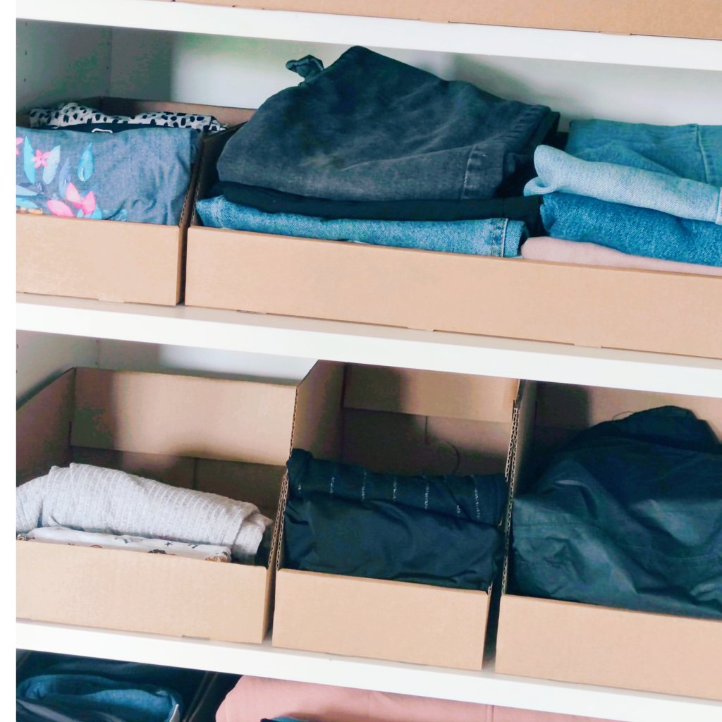 - Kartónové úložné boxy sa ponúkajú v mnohých veľkostiach, aby pasovali do každej hĺbky a šírky šatníkovej skrine.