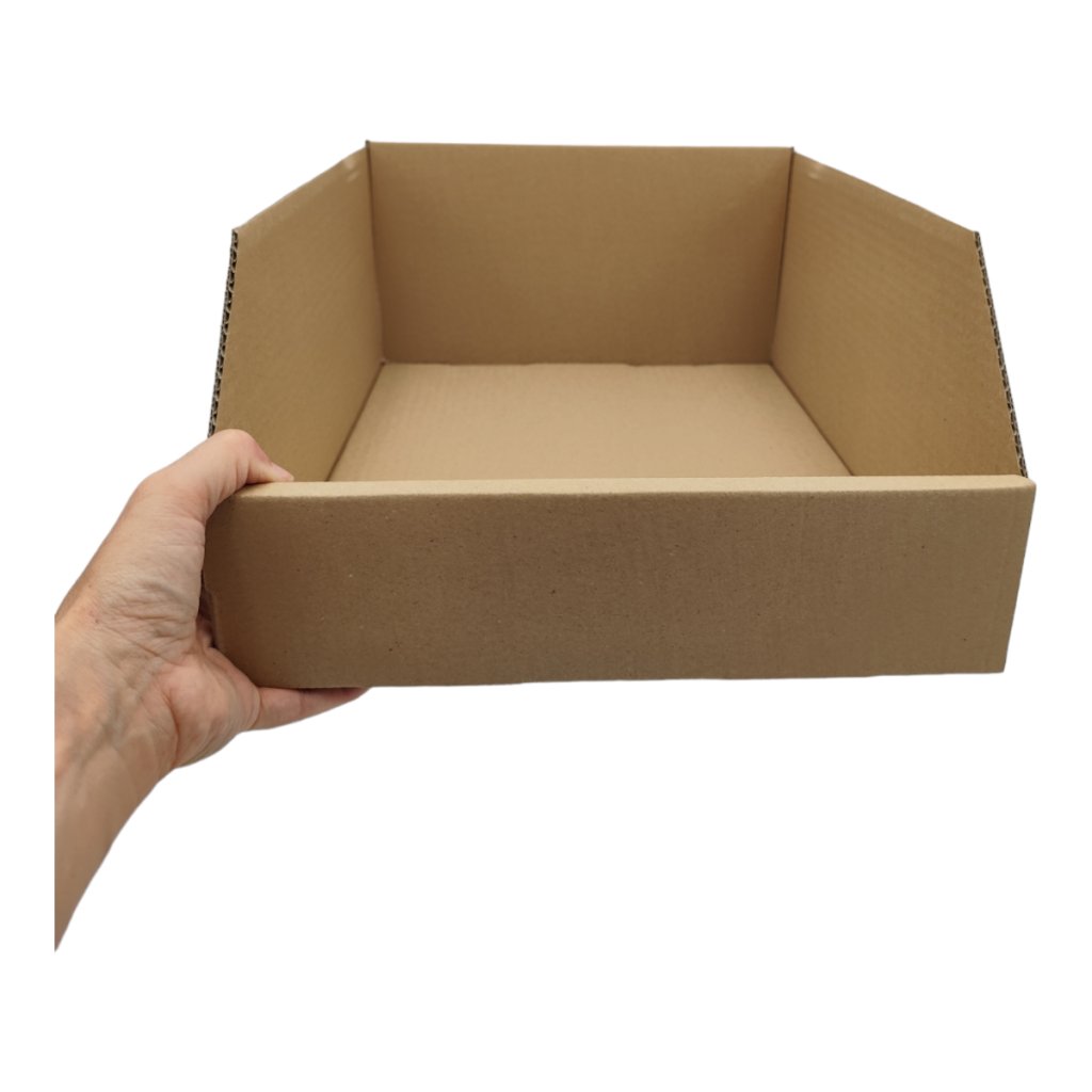 Znížený predný okraj uľahčuje viditeľnosť obsahu. Na krabicu pridajte štítok a organizácia vzrastie o ďalšiu úroveň.