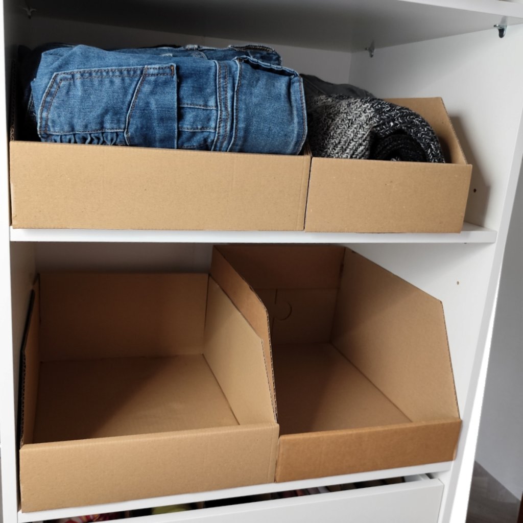 Organizér stavia na jednoduchosti, praktickosti a ekologickom dopade, preto sme nechali vyrobiť boxy z pevného trojitého kartónu. Je navrhnutý priamo na zákazku podľa našich predstáv a pre potreby "usporadejto", tak aby splnil prísne pravidlá, ako si šatníkovú skriňu správne usporiadať.