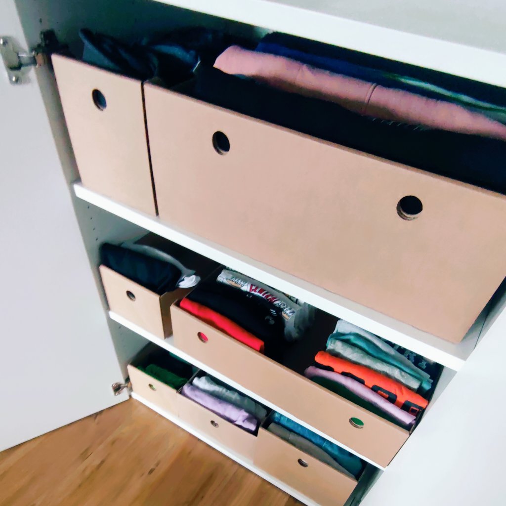 Organizér stavia na jednoduchosti, praktickosti a ekologickom dopade, preto sme nechali vyrobiť boxy z pevného trojitého kartónu. Je navrhnutý priamo na zákazku podľa našich predstáv a pre efektívne uloženie. Univerzálny box sa ale hodí aj do každej inej hlbokej skrine, kde ukladáte potraviny, náradie, hračky, kreatívne potreby, proste čokoľvek potrebujete prehľadne usporiadať a zorganizovať.
