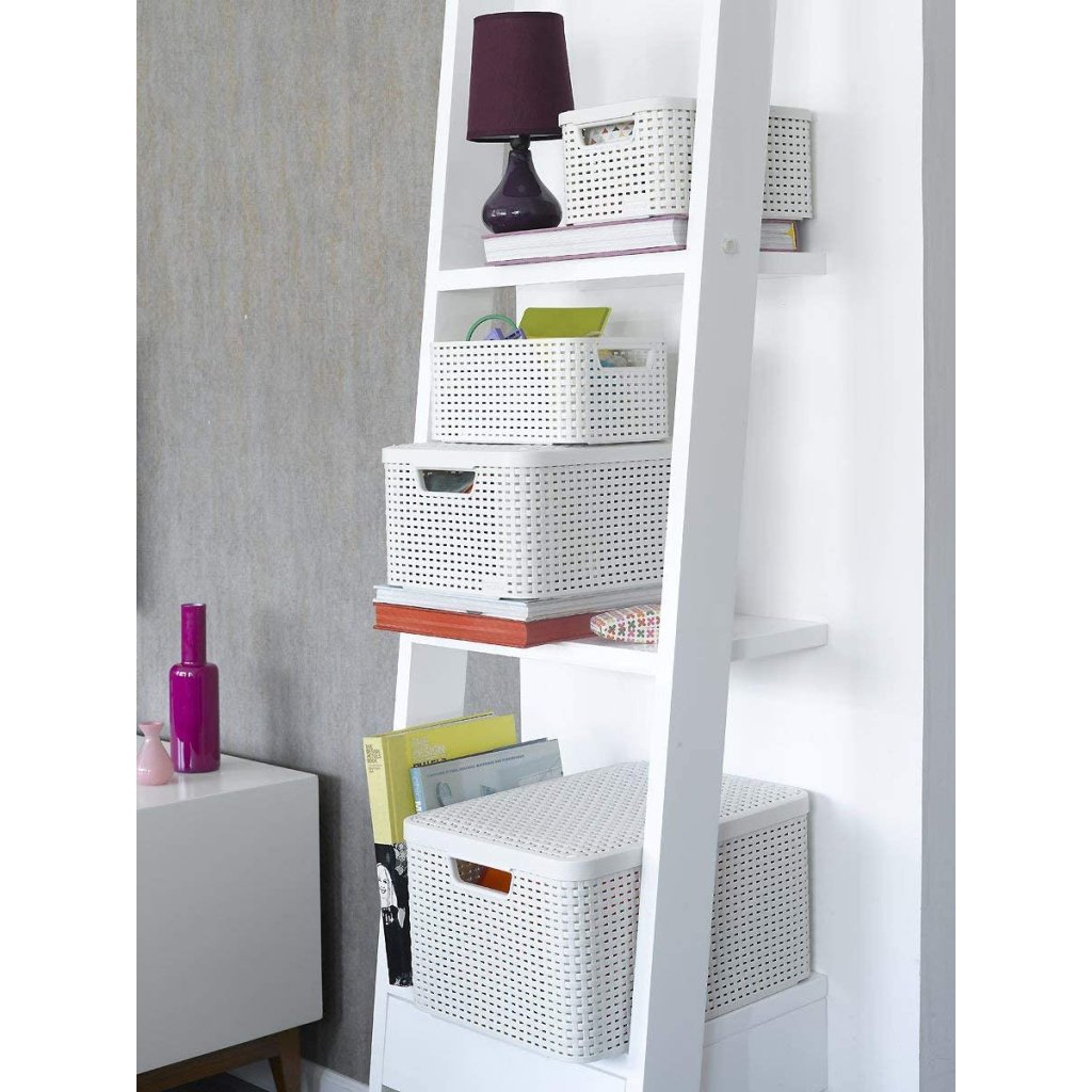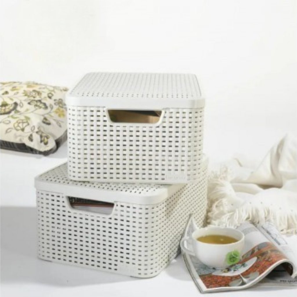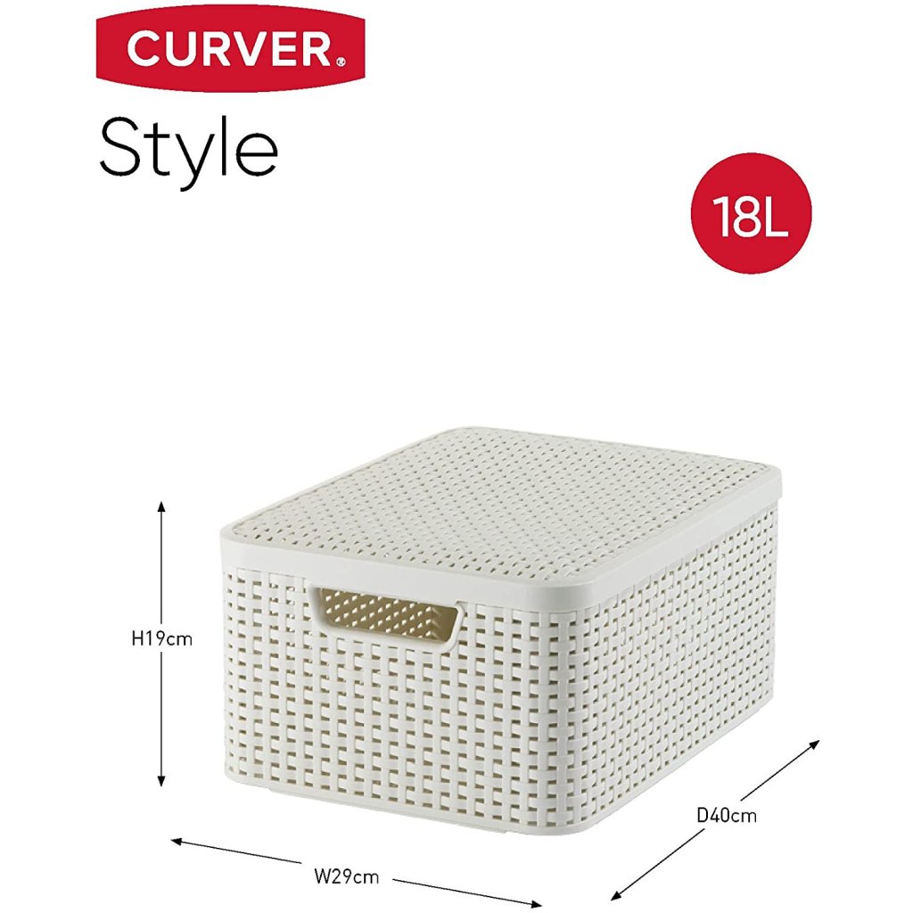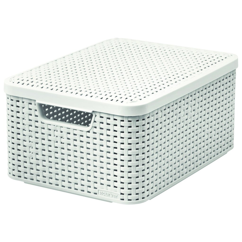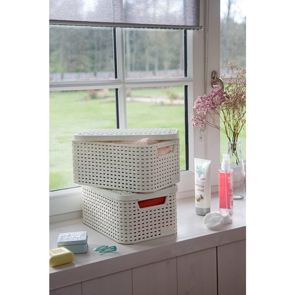 Úložný box, ratanový košík, STYLE2 Curver s vekom, krémový (39 x 29 x 20 - 18 l)