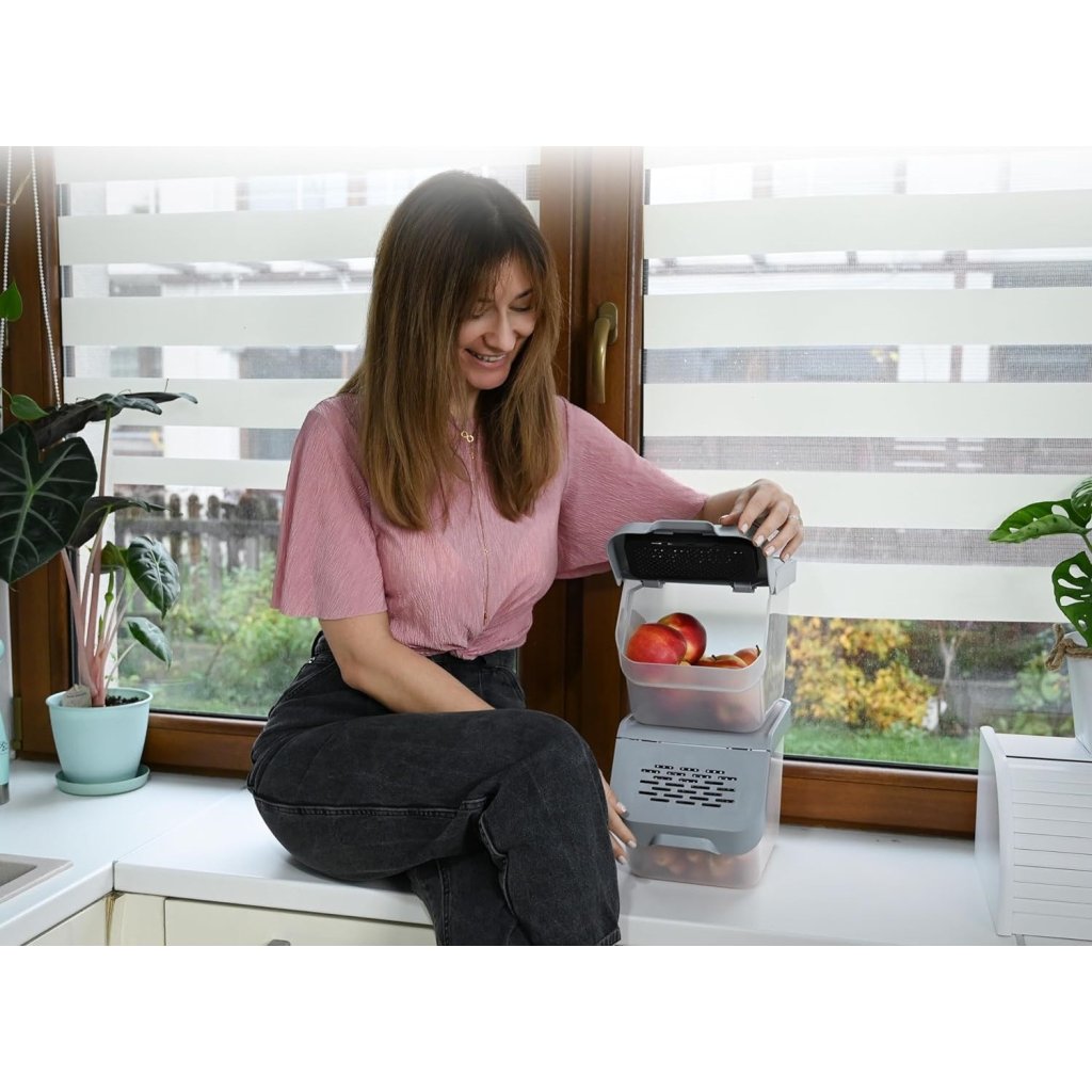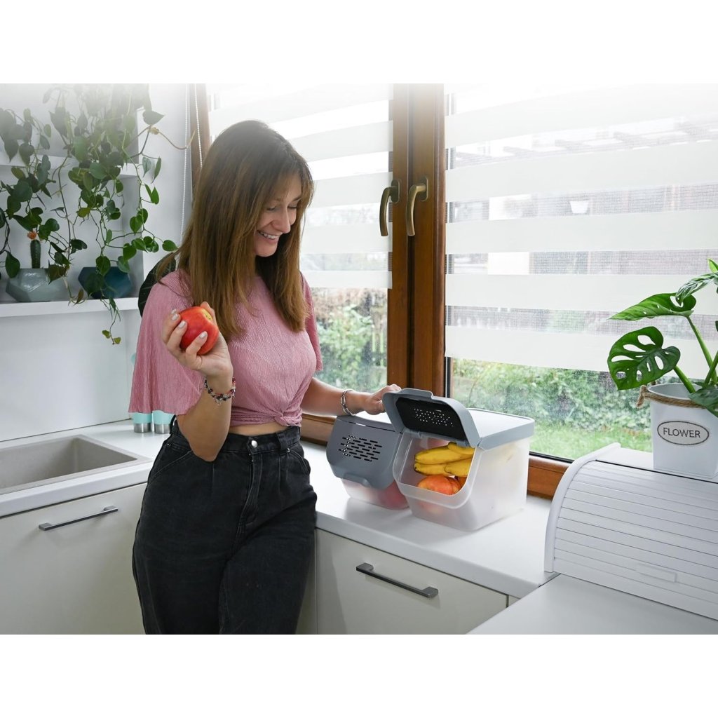 Tento 10-litrový úložný box je skvelým pomocníkom pre hygienické a praktické skladovanie zemiakov, cibule, cesnaku, koreňovej zeleniny a ďalšieho ovocia a zeleniny. Vďaka vetracej klapke zaistí optimálne prúdenie vzduchu, čím pomáha udržať vaše potraviny dlhšie čerstvé a chránené pred nežiaducim hmyzom.