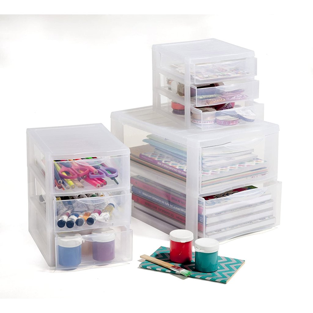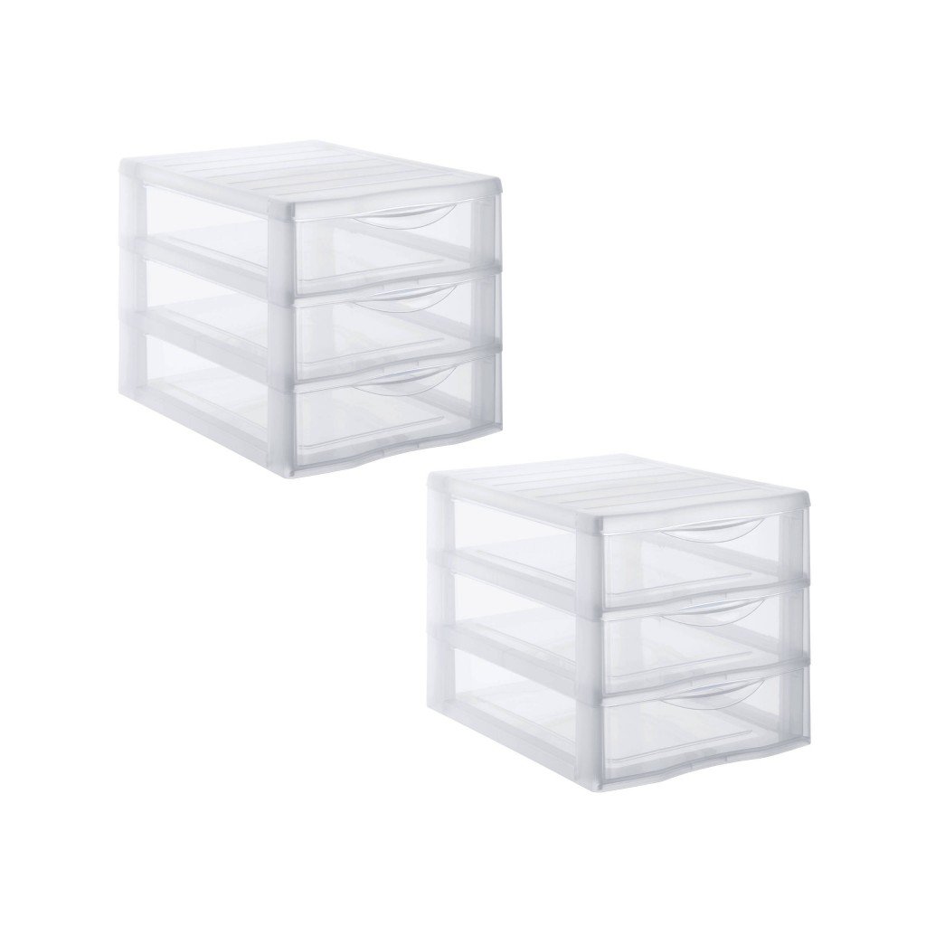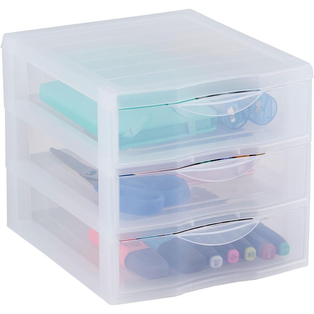Úložný box s 3 zásuvkami, transparentný, ORGAMIX