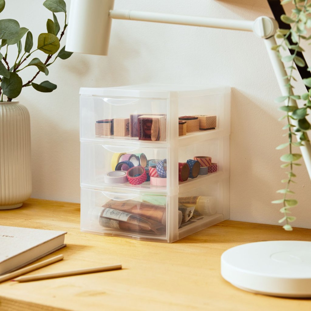 Úložný box s 3 zásuvkami, transparentný, ORGAMIX A5T