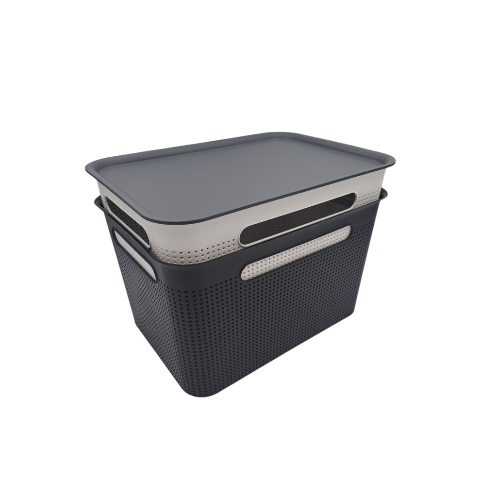 Potrebujete z chaosu urobiť poriadok? S úložnými boxmi BRISEN od švajčiarskej značky Rotho to pôjde ľahko. Elegantné, robustné a praktické boxy v nadčasových farbách biela / čierna sú dostupné v troch veľkostiach a hodia sa do každej miestnosti – od kuchyne cez kanceláriu až po detskú izbu. Na výber je variant s vekom alebo bez veka, podľa vašich potrieb.