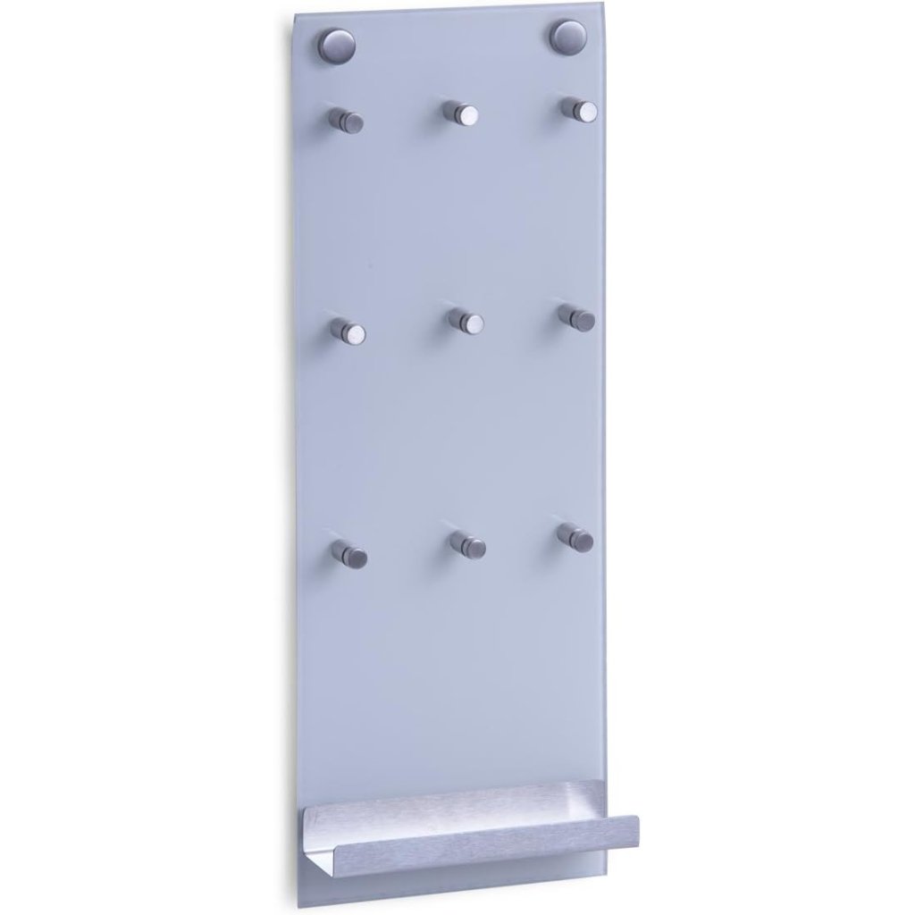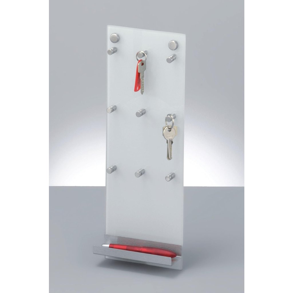 Vešiak na kľúče, sklenená tabuľa s 9 háčikmi, biela