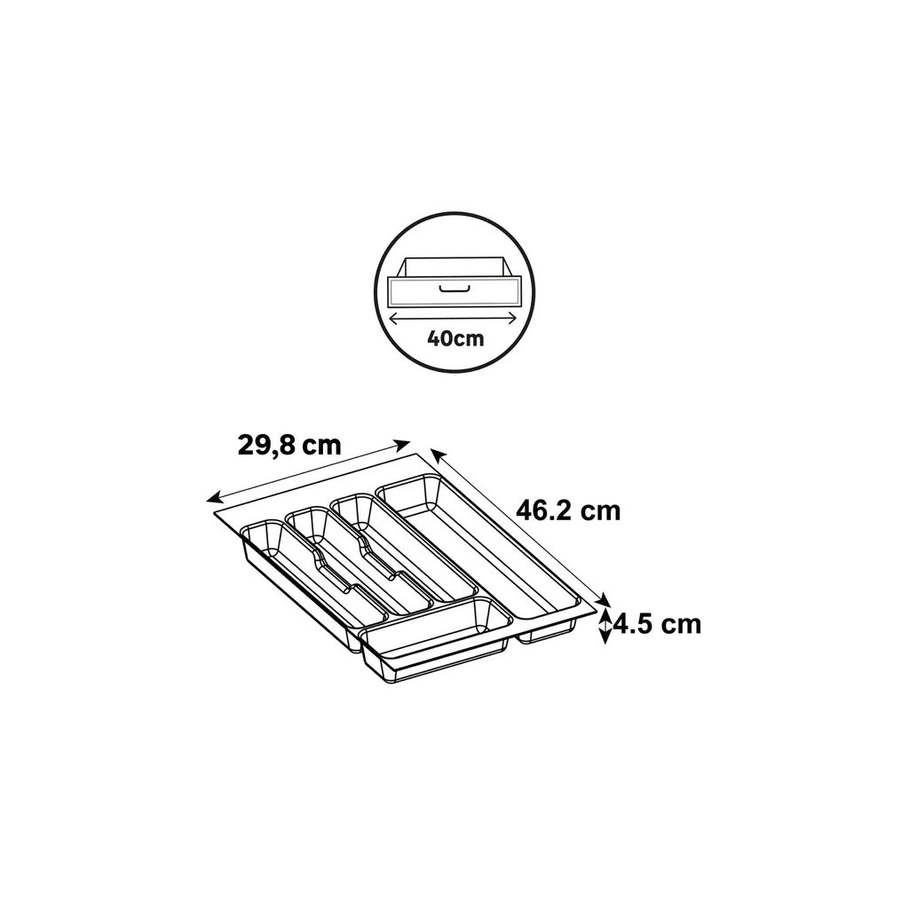 Vložka / príborník do 40 cm zásuvky - CUTLERY sivý plast 30 x 46 cm