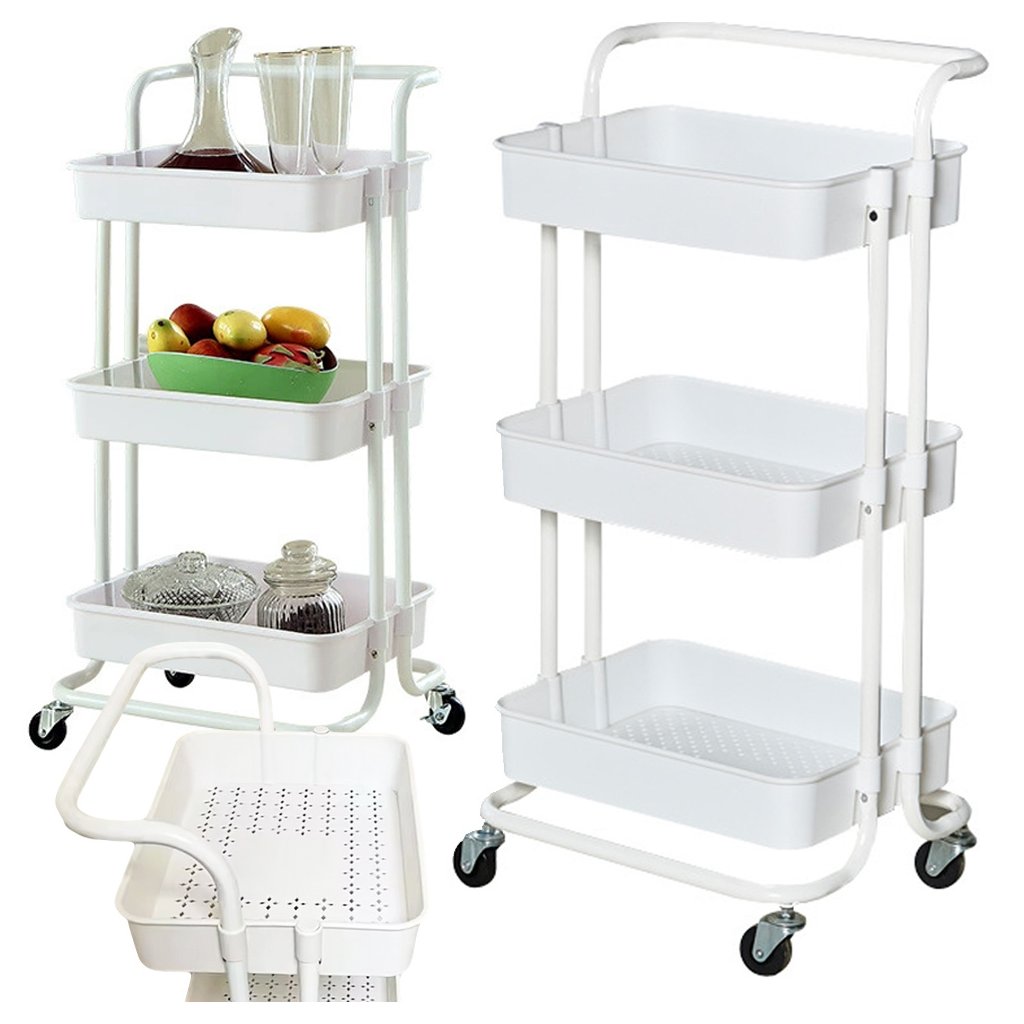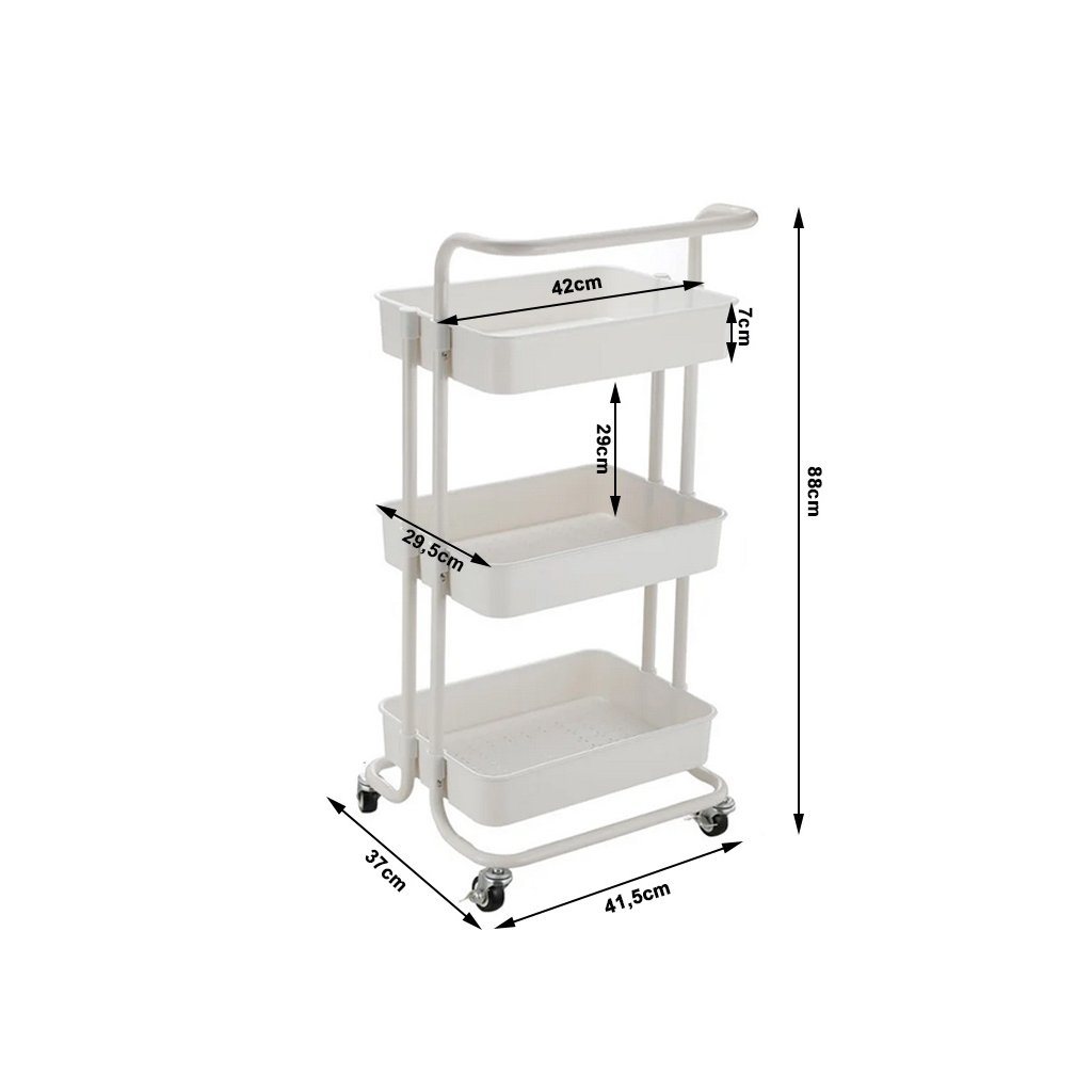 Potrebujete viac miesta v kuchyni, kúpeľni alebo pracovni? Tento trojposchodový úložný vozík je ideálnym pomocníkom pre každodennú organizáciu. Vďaka svojej mobilite, priestranným policiam a stabilnej konštrukcii ponúka šikovné riešenie, ktoré ušetrí miesto a sprehľadní váš priestor. Skvele sa hodí na uloženie potravín, kozmetiky, čistiacich prostriedkov, detských potrieb, kancelárskych doplnkov alebo ako pojazdný bar.
