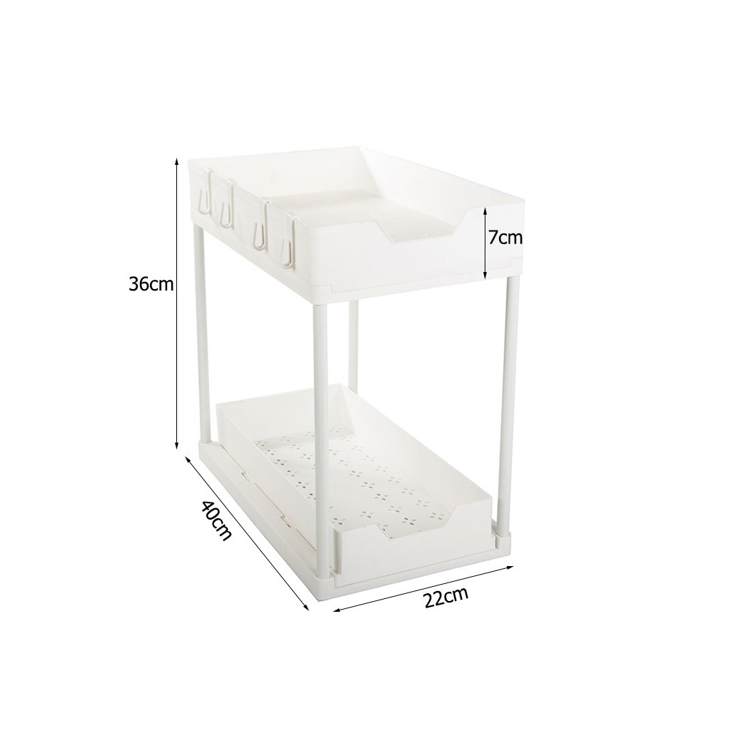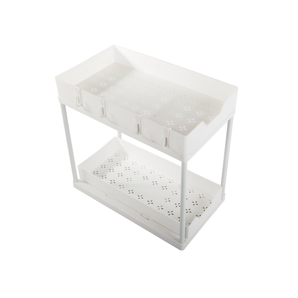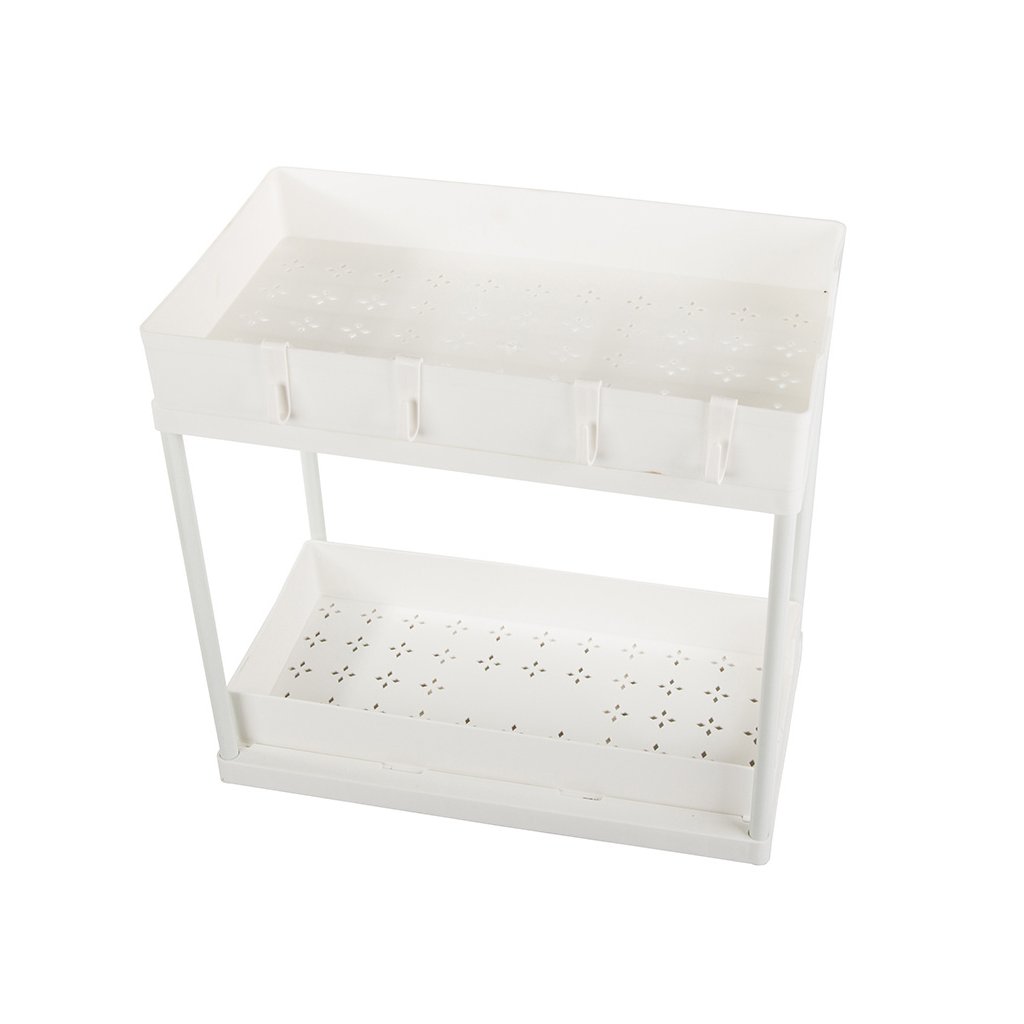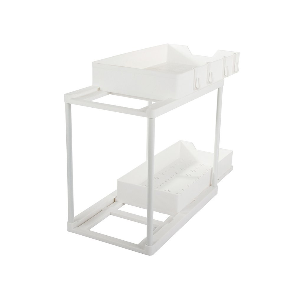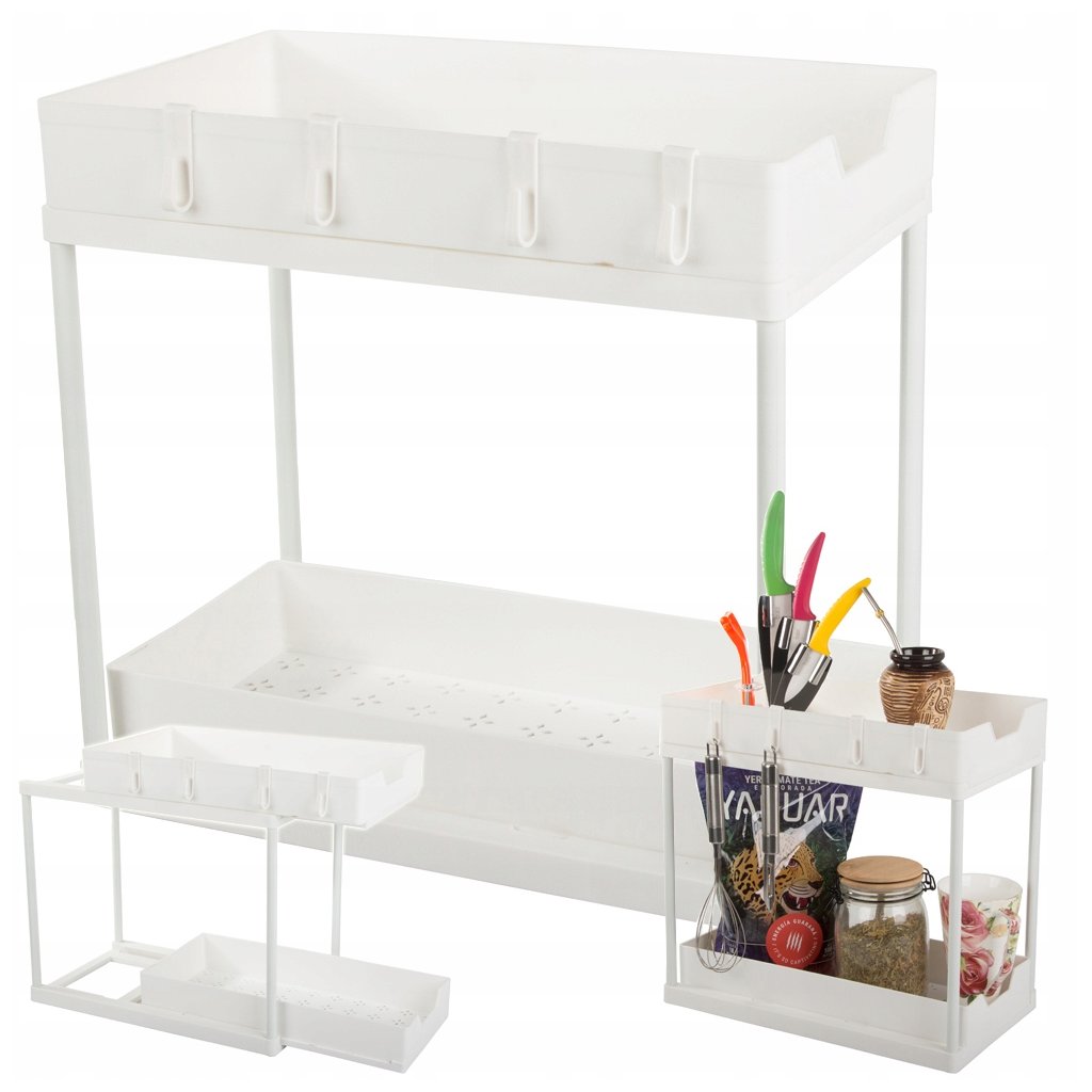 Máte kuchynskú linku alebo kúpeľňovú poličku preplnenú? Tento univerzálny organizér s výsuvnými policami a háčikmi vám pomôže získať prehľad a využiť priestor na maximum. Je ideálny pre koreničky, kozmetiku, fľaštičky, plechovky alebo aj školské a kancelárske potreby. Predovšetkým tam, kde chýba zásuvka alebo polica. Razom vytvorí nový priestor. Vďaka svojmu šikovnému a kompaktnému dizajnu sa zmestí na pracovnú dosku, do skrinky aj na poličku a zároveň skvele vyzerá.