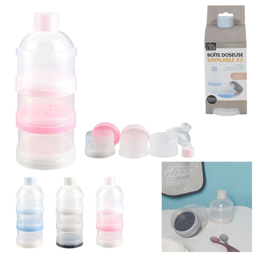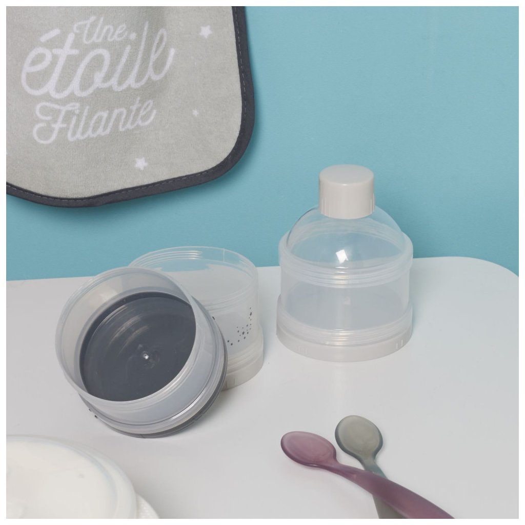 Stohovateľná nádoba na sušené umelé mlieko. Skvele sa hodí na cesty, budete mať vždy nameranú správnu dávku pre vaše bábätko. Produkt navrhnutý pre optimálne skladovanie umelého mlieka pre dojčatá. Horné veko má kupolovitý dizajn s horným otvorom pre zlepšenie prenosu nádoby do fľaše, čo uľahčuje prípravu zmesi pre dieťa. Zásobníky umožňujú stohovanie a demontáž z 3 úrovní, čím sa optimalizuje priestor, ktorý produkt zaberá. Prípravok neobsahuje bisfenol A. Obsahuje 3 dávkovače a kupolovité viečko so zátkou.