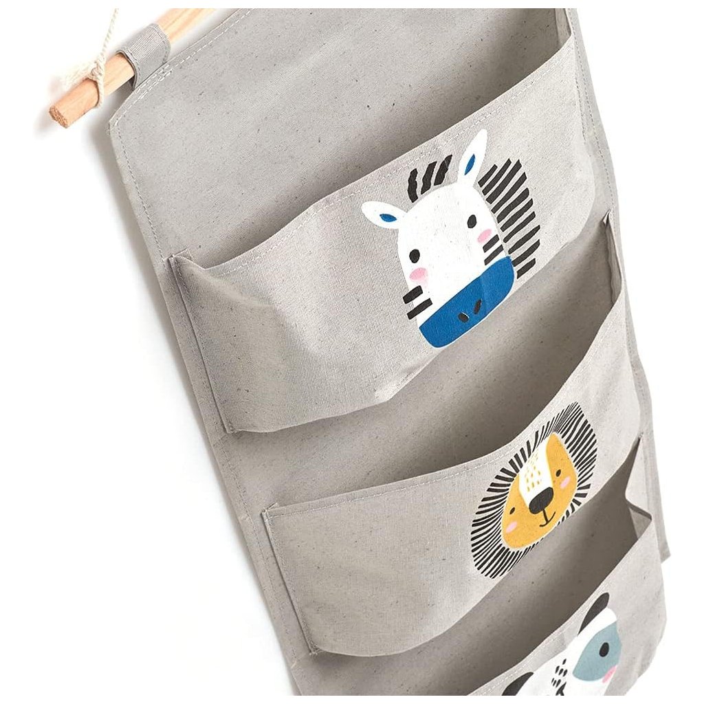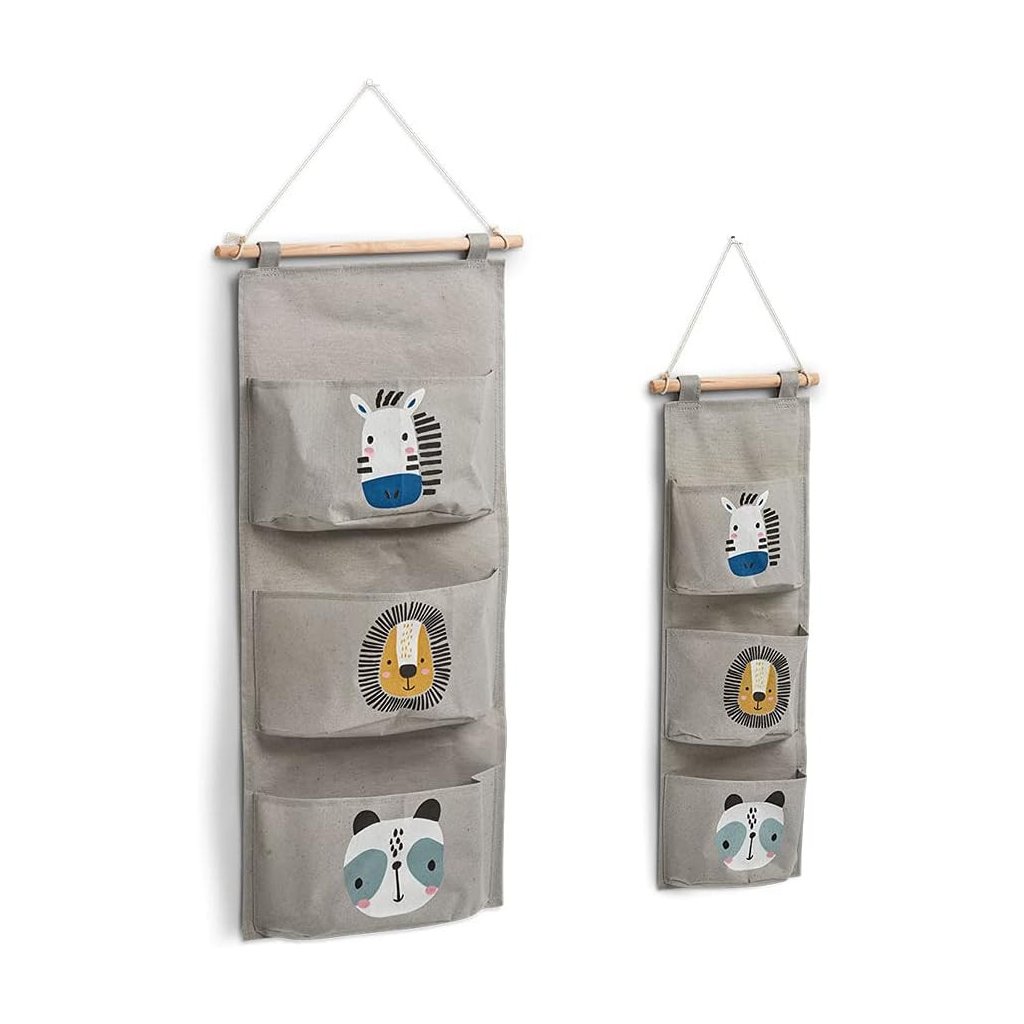 Závesný kapsár, 3 vrecká, drevené madlo, nástenný organizér, motív zvieratá, XL - 35x82