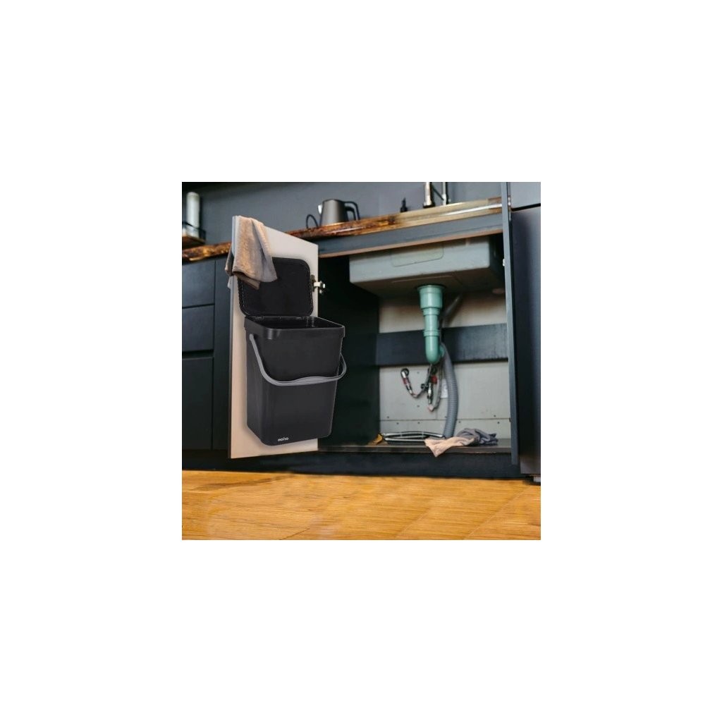 Závesný odpadkový kôš na dvierka, s vekom 10 l - čierny